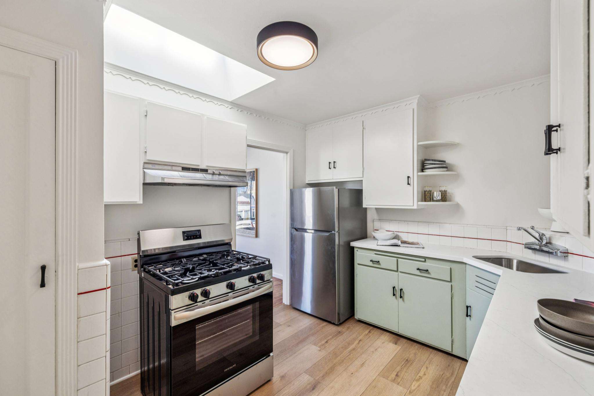 Both units have been refreshed, and include fireplaces with handsome facades, refinished hardwood floors, stylish lighting, showers and bathtubs, 2 stairwells for great access, newer heaters, hot water systems and roof. Utilities are separately metered. Ample storage and 2-car parking enhance functionality.